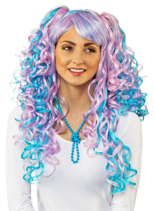 Vollständige Details anzeigenAnimé Damen Locken Perücke mit Ansteckhaaren - Türkis Rosa