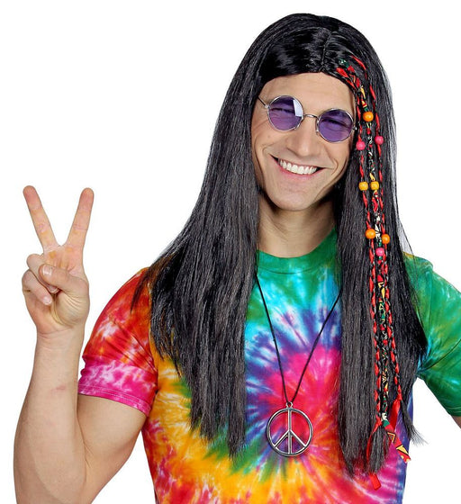 Vollständige Details anzeigenHippie Langhaar Perücke mit Perlen für Herren - Schwarz