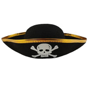 • Dreispitz Piratenhut mit Totenkopf und goldenem Zierband