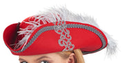 Wollfilz Hut zum Piraten Musketier Kostüm - Dreispitz Rot / Grau