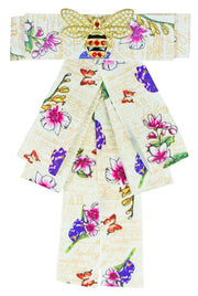 Diese Barock Schleife ist genau das Richtige für den Frühling und den Sommer, da sie mit bunten Blumen verziert ist, sowie einer Biene aus Strass Steinen. Doch gerade das Muster der Stoffschleife kann auch in der ungemütlichen dunklen Jahreszeit ein Lichtblick sein.