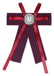 Brosche Barock Schleife mit eckigem Schmuckstein - Kariert - Rot