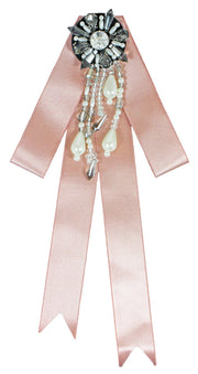 Brosche Barock Schleife mit Schmuckstein und Perlenketten - Altrosa