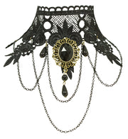 Gothik Spitzen Halskette mit Brosche - Schwarz