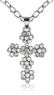 Halskette mit Kreuz aus Strass Blumen - Silber