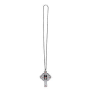 Die lange Halskette besticht mit mystischem Design und roten Steinen und ist ideal zu Pfarrer, Nonnen oder Geistlichen Kostüm.