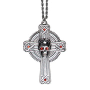 Halskette "Skull" mit Kreuz | Altsilber Rot