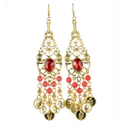 Ohrringe mit Münzen Perlen und Edelstein | Gold Rot