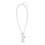 Hübsche Halskette mit einem strassbesetzten Anker und blauen Perlen. Inhalt Halskette Farbe silber, blau Größe Einheitsgröße für Erwachsene Warenzusammensetzung Metall, Glas, Thermoplast Gewicht netto 0,030 kg Hinweis Es wird nur das unter Inhalt beschriebene Produkt verkauft. Sonstiges abgebildetes Zubehör gehört nicht zum Lieferumfang. Achtung! Nicht geeignet für Minderjährige unter 14 Jahren. Von Feuer fernhalten!