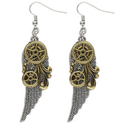 Steampunk Ohrringe mit Flügeln und Zahnrädern 01784 | Silber Gold