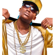 Mit dieser auffälligen Strass Dollar Halskette setzen Sie ein echtes Statement! Der große, glänzende Dollarzeichen-Anhänger ist mit funkelnden Strasssteinen verziert und verleiht jedem Outfit eine Extraportion Bling-Bling. Die massive, goldene Kette im Kordeldesign sorgt für einen authentischen Hip-Hop-Look und macht dieses Accessoire zum idealen Begleiter für Mottopartys, Rapper-Kostüme oder extravagante Auftritte.