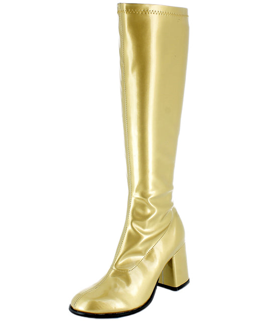 Vollständige Details anzeigenGogo Damen Retro Lackstiefel mit schmalem Schaft | Gold