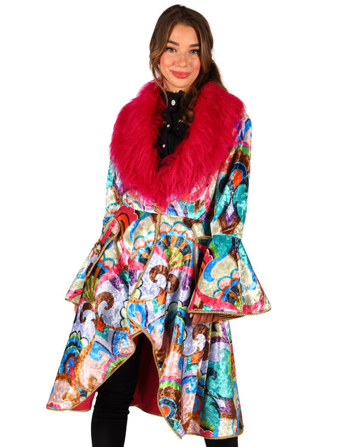 Karneval Jacke für Damen mit Fellbesatz und Blumenmuster | Pink Bunt