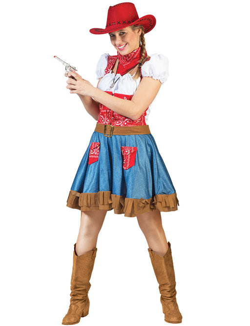 Vollständige Details anzeigenCowgirl "Selina" Damenkostüm - Western Cowboy | Blau Rot