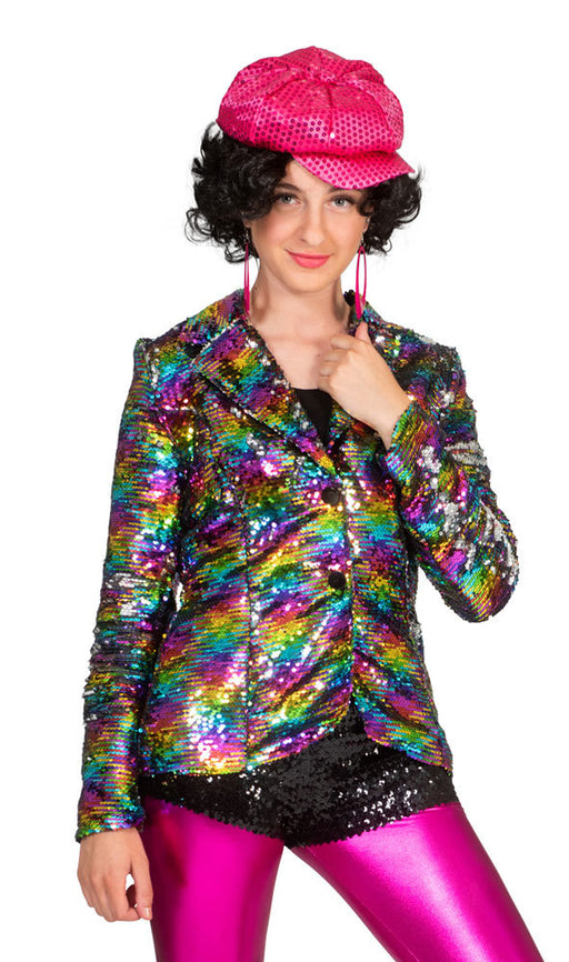 Vollständige Details anzeigenRainbow Glitzer Pailletten Jacke für Damen - Mehrfarbig