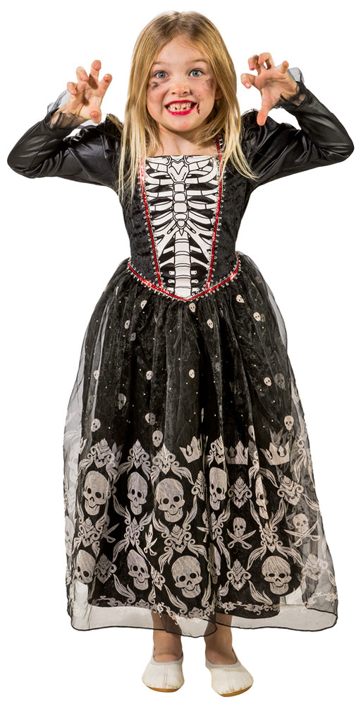 Vollständige Details anzeigenSkelett Kostümkleid Carmilla mit Totenköpfen für Mädchen