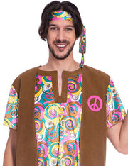 60er Jahre Hippie Kostüm "Psychedelic" für Herrn - Braun | Anzug und Stirnband