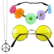 Hippie Set 3-tlg. - Margeriten Haarband, Peace Kette und Lennon Brille | Gelb
