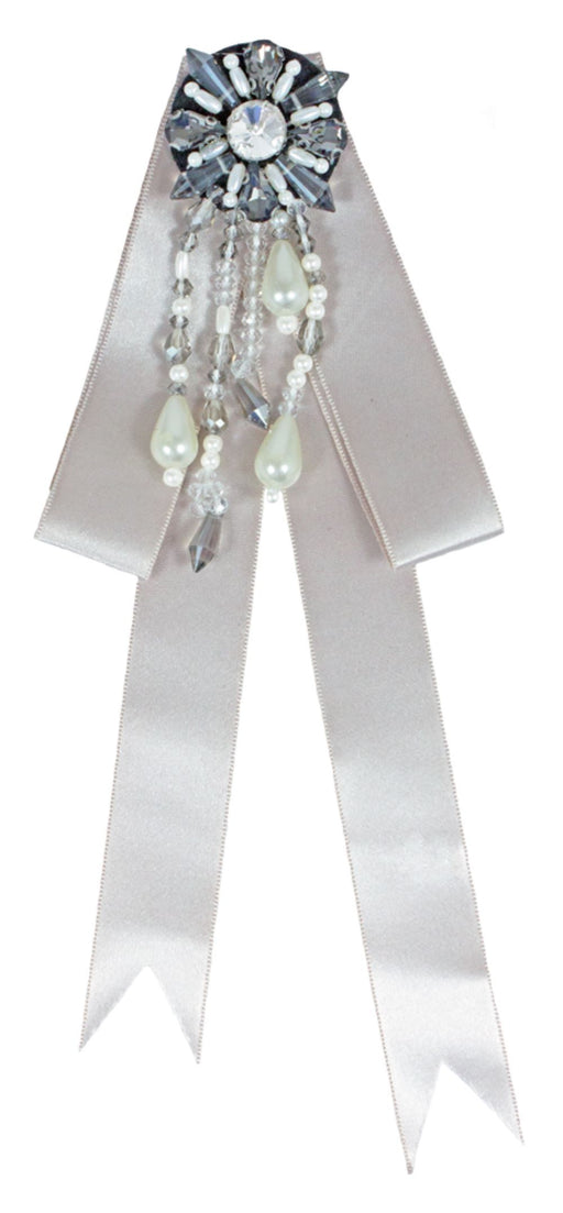 Brosche Barock Schleife mit Schmuckstein und Perlenketten - Grau