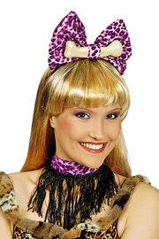 Leoparden Kostümset 3-tlg. Rosa - Schleife, Knochen und Halsband zum Kostüm Neandertaler Steinzeit