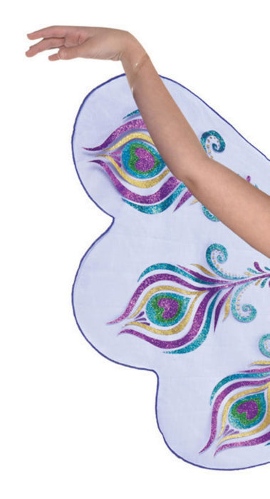 Besonders geeignet ist das märchenhafte Outfit neben der Verwendung als Faschingskostüm für Kinder auch als Feenkostüm auf Märchen-Mottopartys. Die glitzernden XL-Flügel sind eine Besonderheit des Pfauenkostüms, die man auf keinen Fall unausgesprochen lassen sollte. Diese werden hinten am Kleid mit Klettverschlüssen befestigt und an den Armen mit schmalen Gummibändern gehalten. So schwingen die Glitzer-Flügel bei jeder Bewegung schön mit. Ein verzierter Haarreif schließt dieses besondere Kinderkostüm ab. Ein zauberhaftes Märchen, Vogel und Tierkostüm, um gemeinsam mit vielen anderen Tieren die Welt zu erkunden, egal ob beim Karneval oder auf einer Kostümparty.
