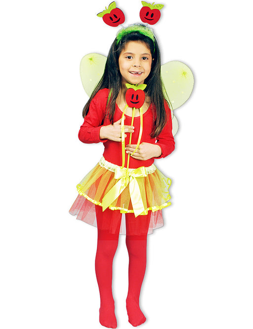Apfel Kostümset für Mädchen - 4-tlg. mit Tütü und Feenflügeln | Faschingskostüm Thema Obst Natur