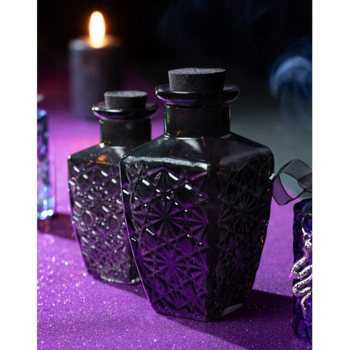 Verleihen Sie Ihrer Halloween-Dekoration einen Hauch von dunkler Eleganz mit dieser strukturierten Glasflasche in Schwarz. Mit ihren Maßen von 6,5 ...
