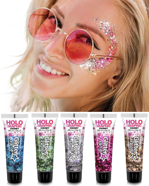 Streichen Sie Glitzer von Ihrer Festival-Must-Haves-Liste mit unserem mühelosen und umwerfenden holografischen, klobigen Glitzergel von PaintGlow. ...