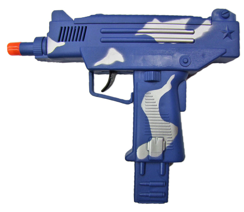 Das Set zum Spielen oder als Ergänzung zum Faschingskostüm besteht aus einem Soldaten Helm in grün weißer Camouflage und einer blau grauen Maschinenpistole. Der Helm vervollständigt perfekt das Soldaten oder Armee Kostüm und mit der Spielzeug Pistole kann sich der kleine Soldat vor Angreifern schützen. Das kleine Maschinengewehr gibt ein Rattergeräusch von sich.