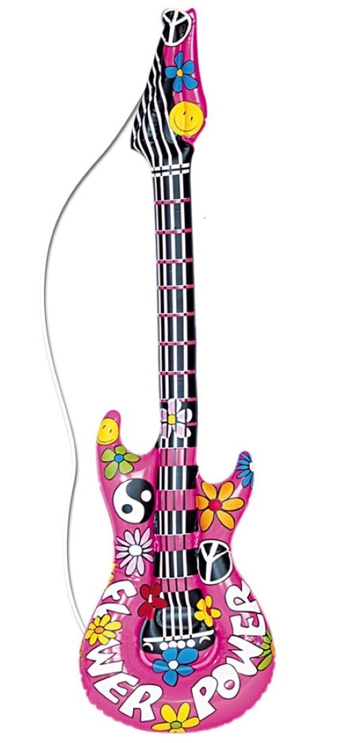 So werden Sie zum Rockstar! Diese aufblasbare Gitarre im E-Gitarren-Look mit Hippie-Muster lässt sich im Nu aufblasen und ist sofort einsatzbereit....