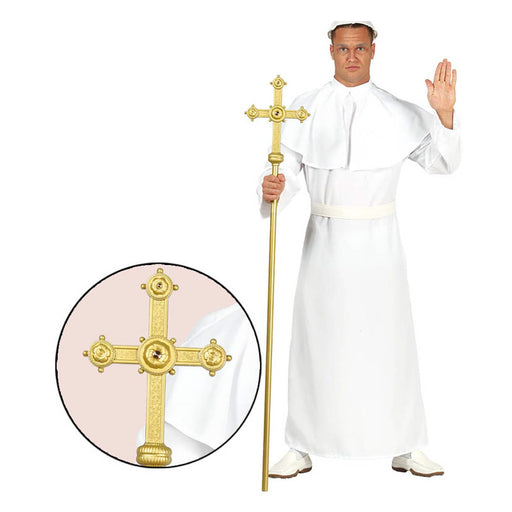 Dieser tolle Stab ist ein eindrucksvolles Accessoire zum Kostüm als Nikolaus, Bischof, Geistlicher oder gar als Pabst. Der goldene Stab ist aus Met...