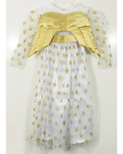 Kinder Engelskostüm "Sternen Engel" mit Flügeln - Samtkleid Weiß Gold