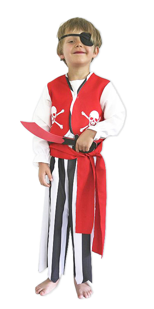 Super Outfit für unsere kleinen Piraten! Tolles 5-teiliges Karnevalskostüm für Kinder bestehend aus einem Oberteil mit tollem Piratendruck, Hose, ...