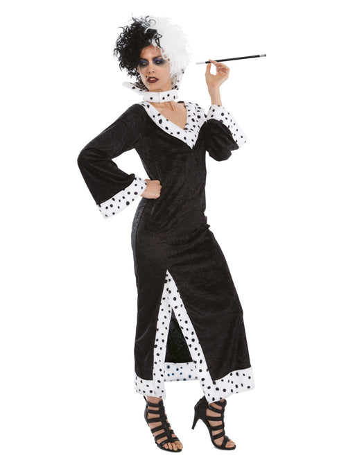 Vollständige Details anzeigenBösewichtin "Dalmatia" Kostüm für Damen - 2-tlg. | Schwarz Weiß