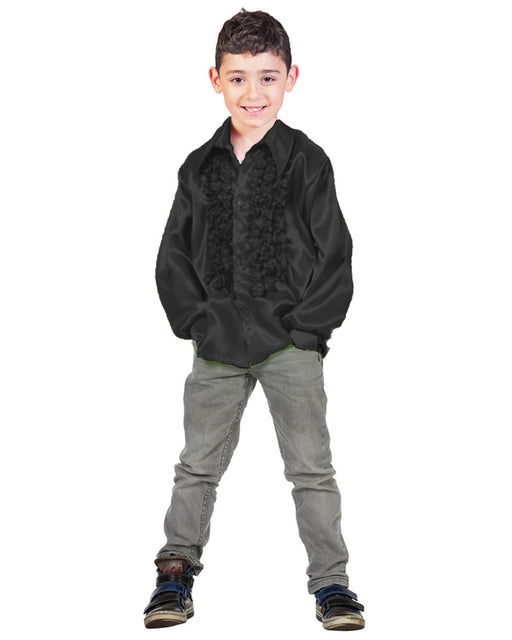Vollständige Details anzeigen70er Jahre Satin Rüschenhemd "Johnny" für Kinder | Schwarz