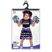 Das Kostümset besteht aus einem zerrissenen Kleid im klassischen Cheerleader-Stil, das durch Blutflecken und ausgefranste Kanten den typischen Zombie-Look bekommt. Dazu gehören blutbespritzte Strümpfe und ein Pompon, mit dem auch nach der Apokalypse noch Stimmung gemacht werden kann!