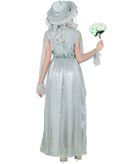 Halloween Kostüm "Geisterbraut" für Damen | Geister Hexen Kleid mit Hut - Grau