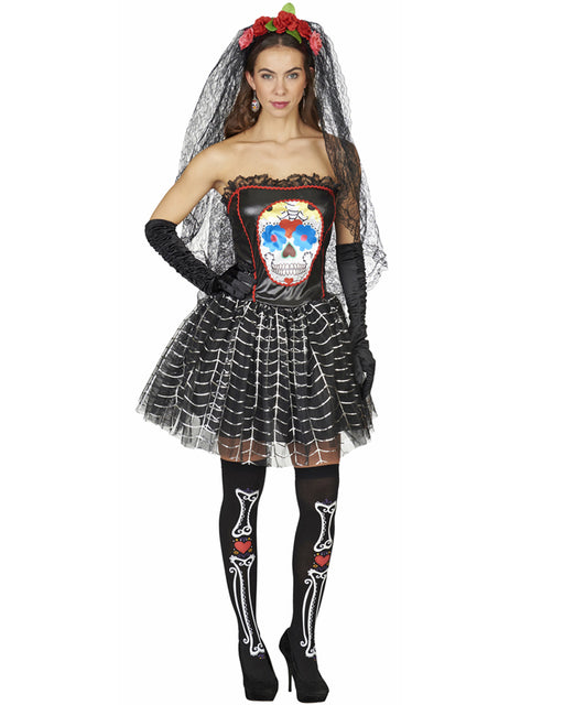 Vollständige Details anzeigen"Day of the Dead" Kostüm für Damen Schwarz | Kleid mit Totenkopf