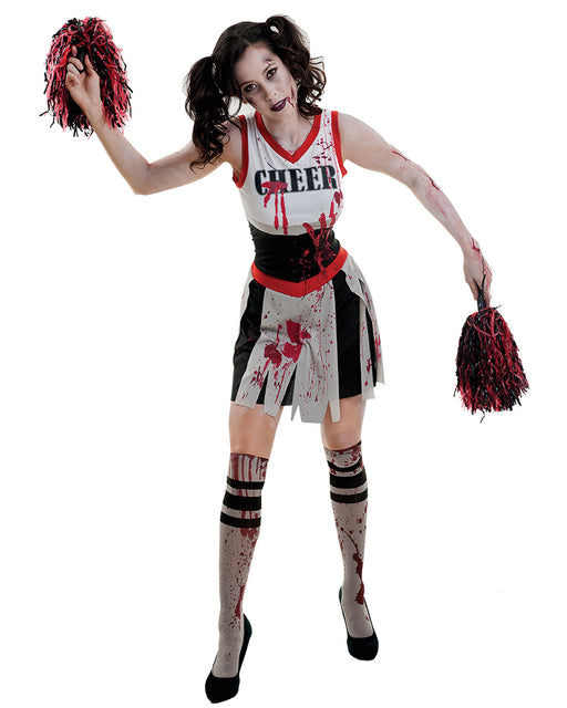 Vollständige Details anzeigenZombie Cheerleader Halloween Kostüm für Damen | Schwarz Rot