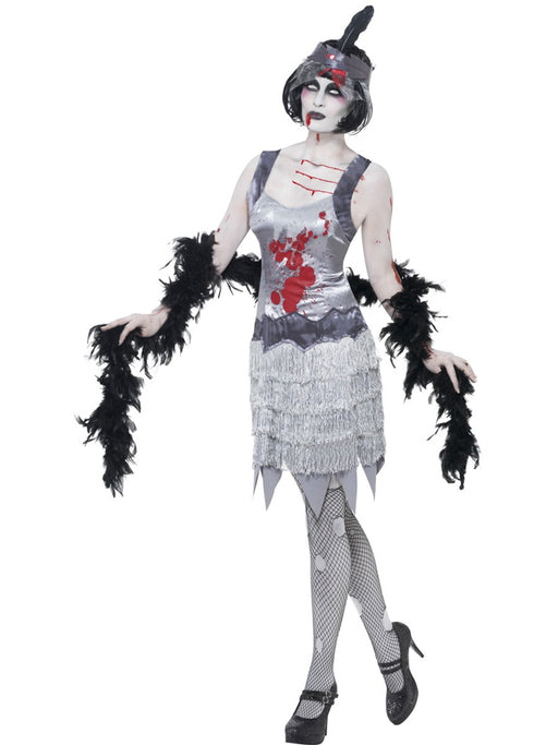 Vollständige Details anzeigenZombie Charleston Flapper Kostüm für Damen | Grau