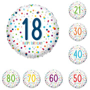 18" Runder Folienballon "Confetti Birthday" Ø43cm | Zahl