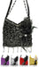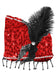 Die schöne Handtasche ist mit Pailletten, Federn, Schmucksteinen und Perlen verziert. Das Täschchen hat ein langes Stoffband und ein kurzes Perlenband und lässt sich prima über der Schulter tragen.