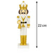 Gefertigt aus hochwertigem Material und mit liebevollen Details verziert, steht der Nussknacker stabil auf einem goldfarbenen Sockel. Der glänzende Goldton sorgt für festliche Akzente, ohne aufdringlich zu wirken, und fügt sich ideal in elegante, klassische oder moderne Weihnachtsdekorationen ein.