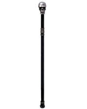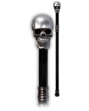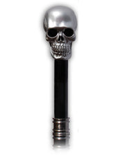 Der Totenkopf Zierknauf zeigt einen silberfarben Skull. Der Spazierstock ist komplett aus PVC Kunststoff.