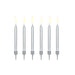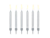 Glatte Geburtstagskerzen in Silber-Metallic, ca. 6 cm groß, Set mit 6 Kerzen und 6 Halter.