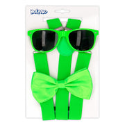 Partyset Hosenträger, Brille und Fliege | Neon Grün