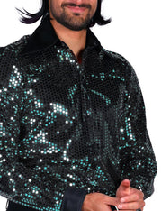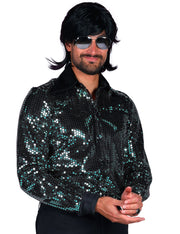Show Pailletten Hemd "Night Fever" für Herren - Türkis | Disco Party 70er Jahre Kostüm