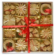 Weihnachtsbaumschmuck Strohsterne 56-tlg. Ø 3-6 cm Natur Rot | 75580 - Christbaum Anhänger