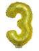 Zahlen Folienballon 41 cm mit Stab - Holografisch Gold Zahl 3
