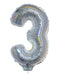Zahlen Folienballon 41 cm mit Stab - Holografisch Silber Zahl 3